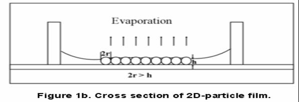 We have developed a simple cell set-up which allows the control of the miniscus of the drying suspension (Fig. 1a).[1] The set-up enables us to create a concave miniscus, which leads to the fromation of a two-dimensional particle film in the center of the cell as the particle suspension dries (Fig. 1b).